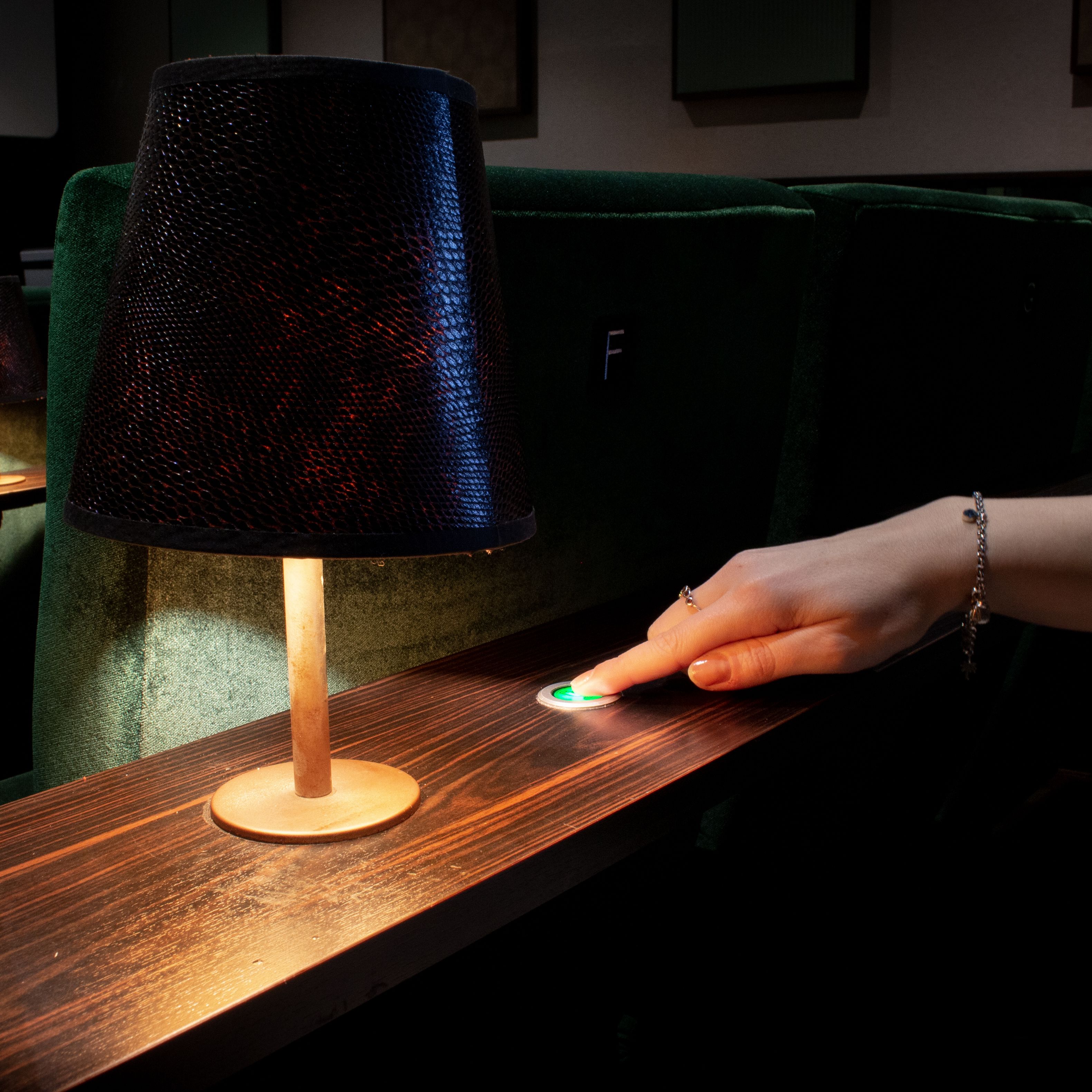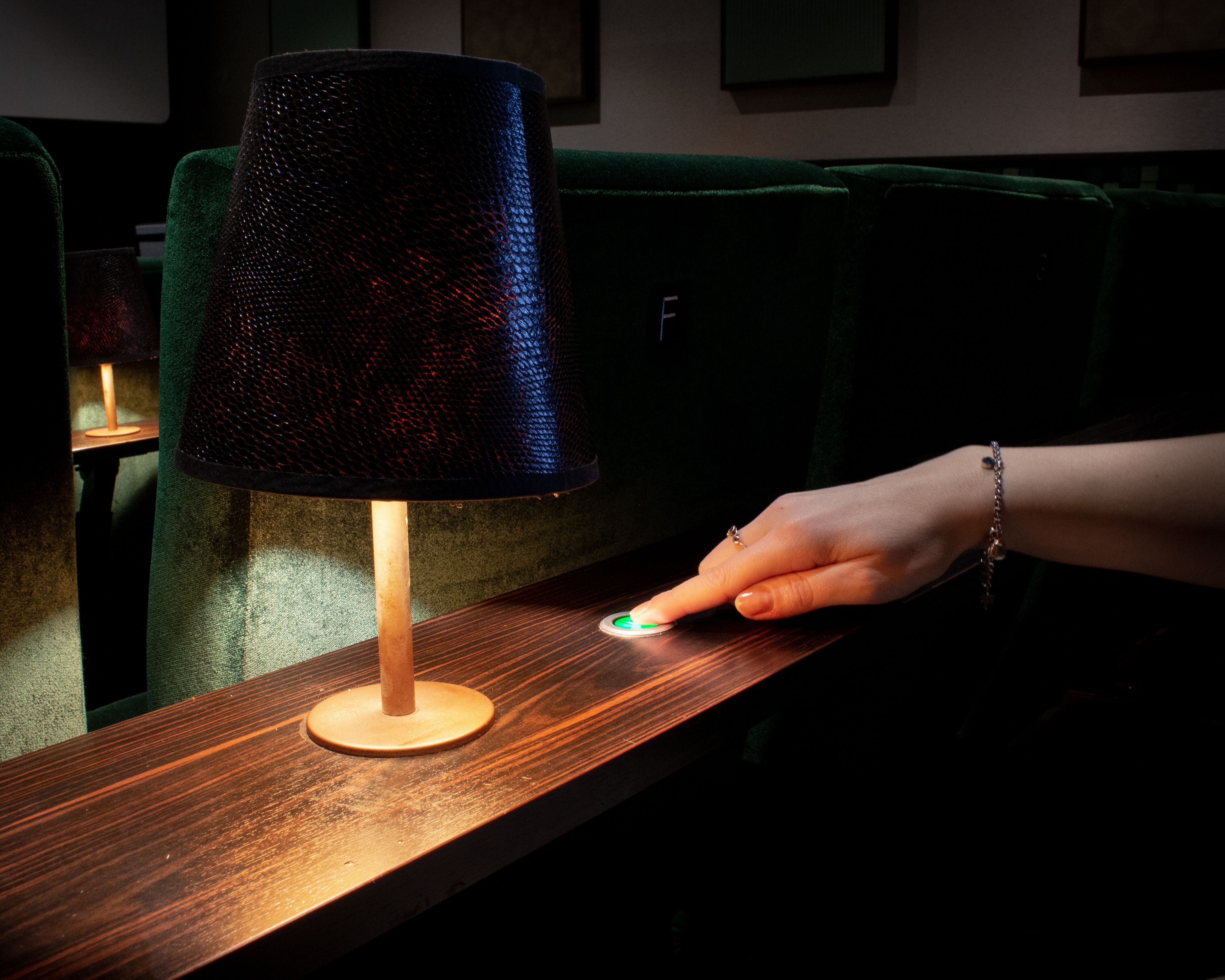 De serviceknop neemt een centrale rol in om gasten zoveel mogelijk comfort te bieden. Er is zowel een fysieke serviceknop op het tafeltje bij de plaatsen in de zaal als een digitale serviceknop, die het mogelijk maakt om vooraf of vanuit de zaal via een mobiele telefoon te bestellen. Het meest wordt de serviceknop gebruikt om een hapje en drankje te bestellen van onze uitgebreide menukaart. Daarnaast kunnen gasten de serviceknop gebruiken voor alle mogelijke wensen tijdens de voorstelling. Zo kunnen bijvoorbeeld op verzoek het geluidsniveau of de temperatuur tijdens de voorstelling aangepast worden. Ook is het mogelijk een extra kussentje te vragen.